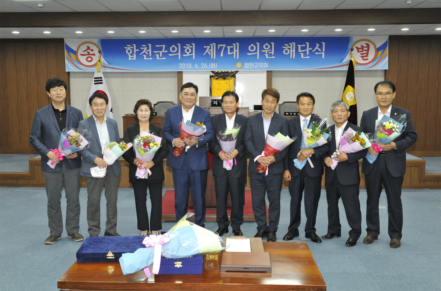 제7대 합천군의회 의원 해단식이 2018. 6. 26. 11시에 이루어 졌습니다. |