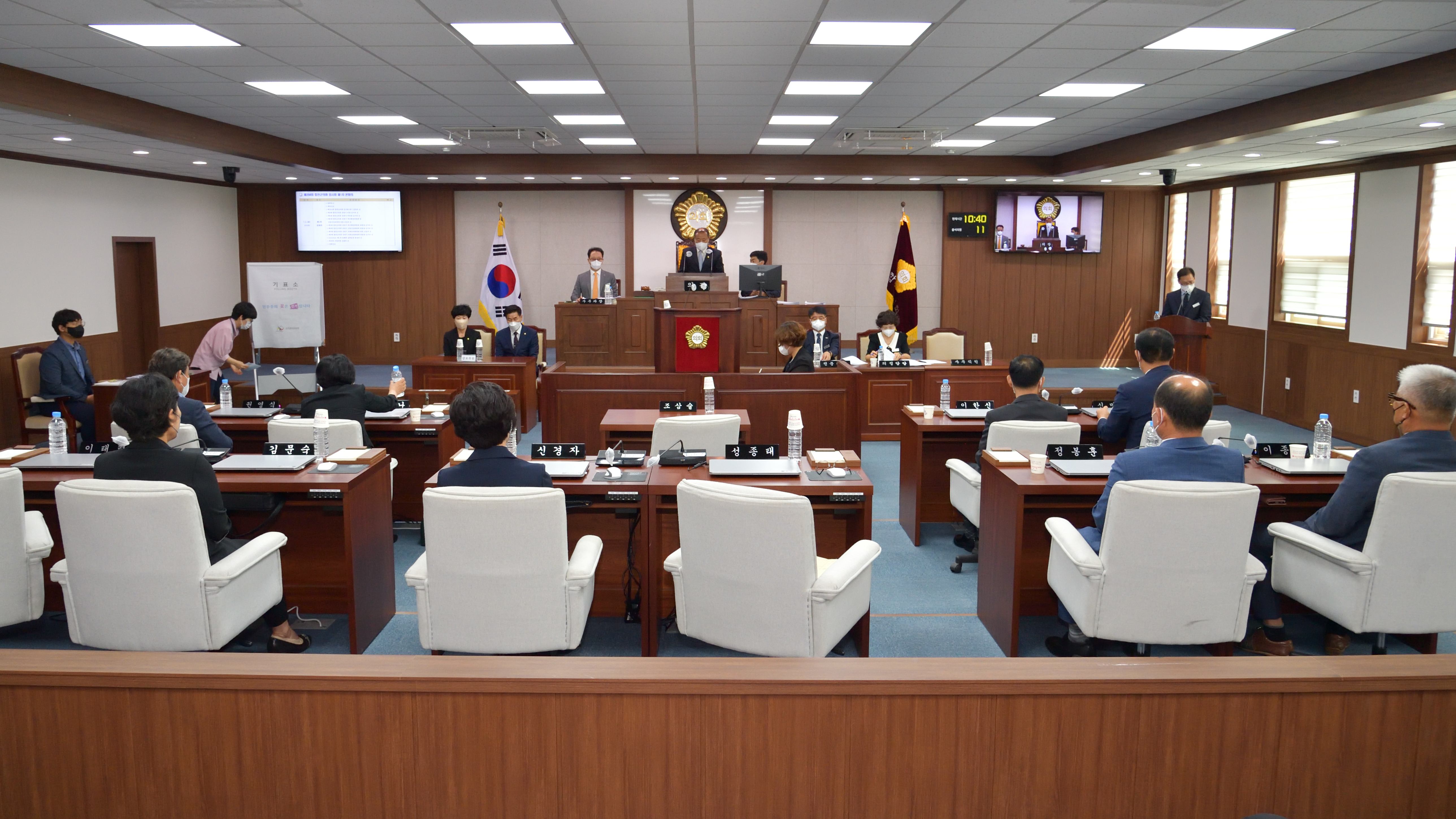 ● 제264회 임시회 기간 일 시 : 2022. 7 .5.(화) ● 주요 안건 - 제264회 합천군의회 임시회 회기결정의 건 - 제9대 합천군의회 전반기 의장 선거의 건 - 제9대 합천군의회 전반기 부의장 선거의 건 - 제9대 합천군의회 전반기 복지행정위원회 및 산업건설위원회 위원 선임의 건 - 제9대 합천군의회 전반기 복지행정위원회 위원장 선거의 건 - 제9대 합천군의회 전반기 산업건설위원회 위원장 선거의 건 - 제9대 합천군의회 전반기 의회운영위원회 위원 선임의 건 - 제9대 합천군의회 전반기 의회운영위원회 위원장 선거의 건 - 2022년도 제1차 정례회 집회일정 변경의 건 - 회의록 서명의원 선출의 건 |