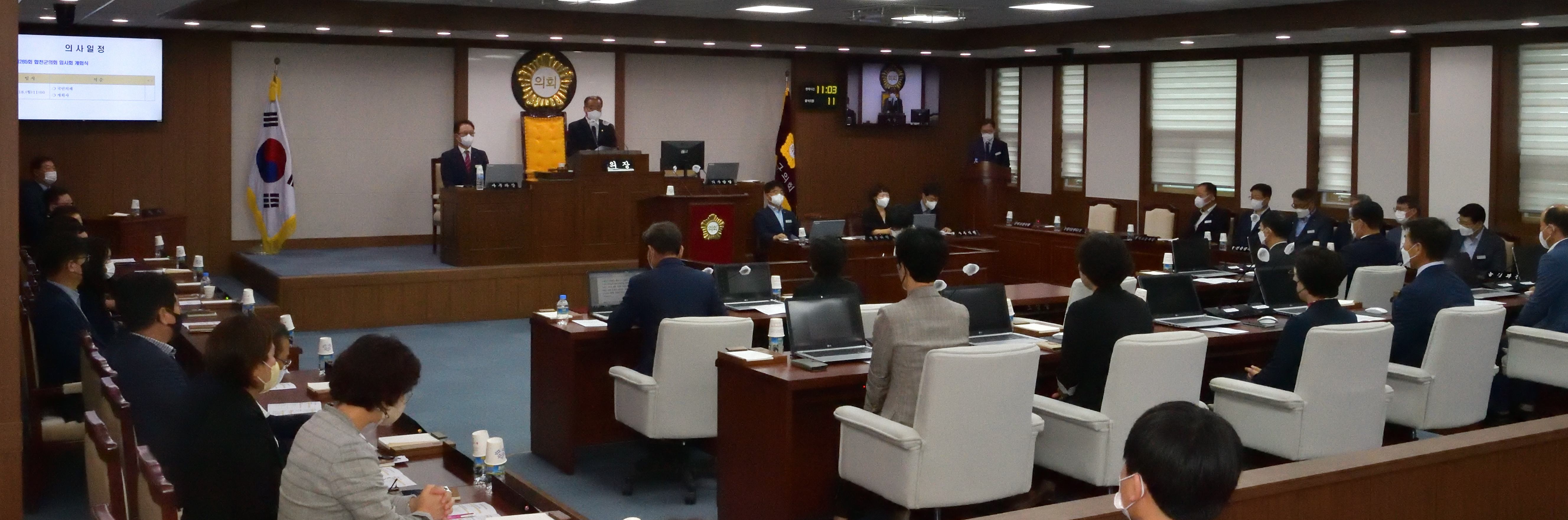 ● 일시 - 22.7.18.(월) 오전 11시 ● 장소 - 2층 본회의장 ● 안건 1. 제265회 합천군의회 임시회 회기 결정의 건 2. 2022년 군정 주요업무 보고 3. 군수 및 관계공무원 출석 요구의 건 4. 회의록 서명 의원 선출의 건 5. 휴회의 건 * 5분 자유발언 (권영식 의원) |