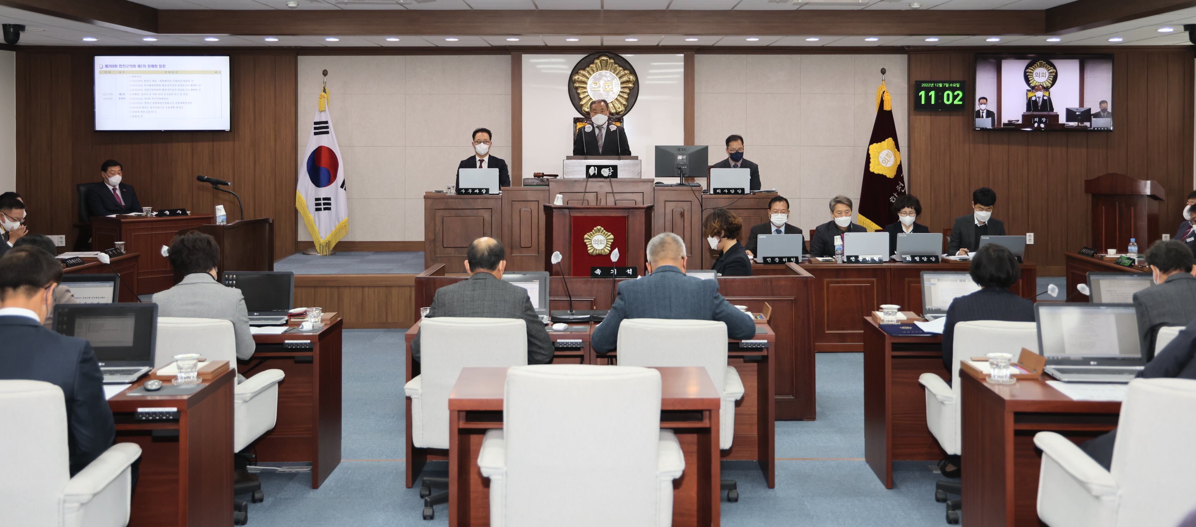 제269회 제2차 본회의 - 2023년도 합천군 세입·세출 예산안 시정연설 청취의 건 - 2022년도 행정사무감사 결과보고서 채택의 건 - 2022년도 제3회 추가경정예산안 및 기금운용계획변경안 승인의 건 - 상임위원회 의안심사결과보고 및 의결(조례, 공유재산) - 군정에 대한 질문의 건 * 5분 자유발언 |