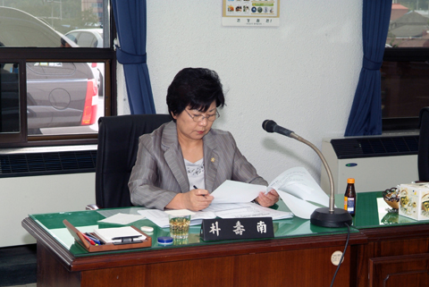 합천군 공유재산 변경분을 심사 중인 박수남의원