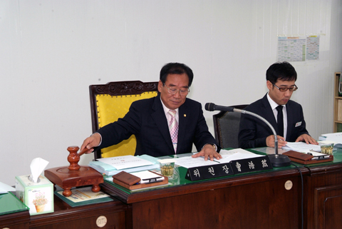 제150회 임시회 예산결산특별위원회를 진행하고 있는 조호연 위원장